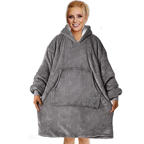 LAMOOER Coperta con Cappuccio, Felpa Oversize in Morbido Pile con Cappuccio e Tasca Grande, Pigiama Caldo per la Casa per Donne, Uomini, Bambini (Grigio)