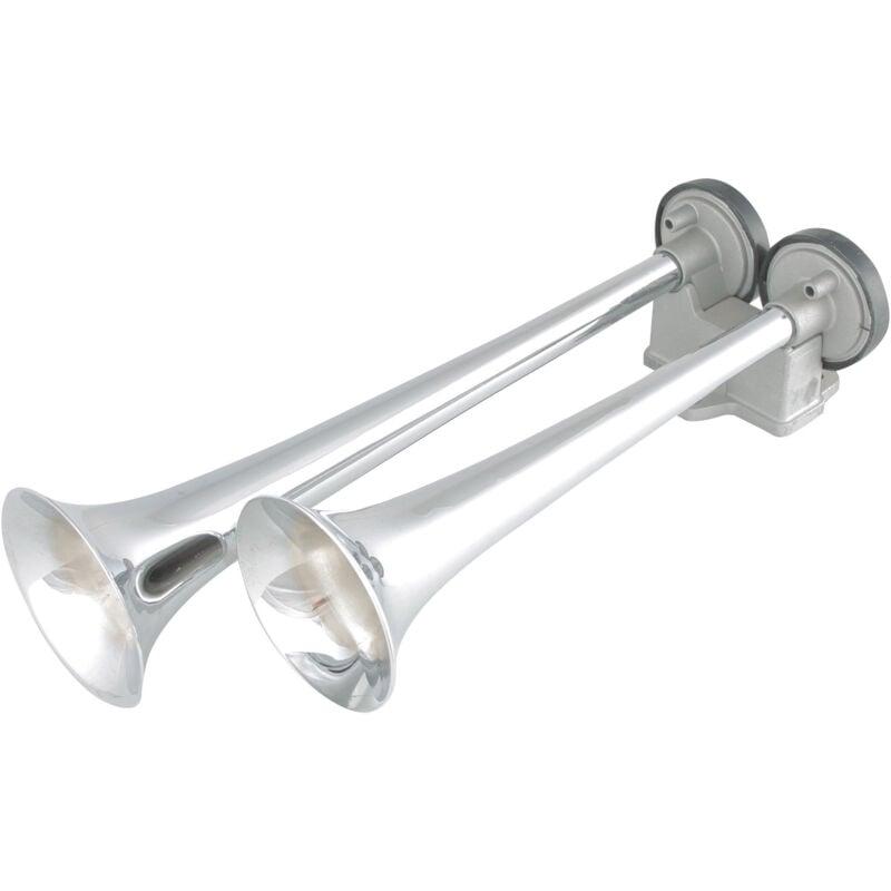 2 suoni: unito o alternato (tipo pullman) 118 dB. Composto da: 2 cornetti in metallo cromati 30+35 cm, compressore elettrico, relè, interruttore, tubo ed accessori di montaggio. Acquistalo subito da CFadda e ricevilo comodamente a casa.