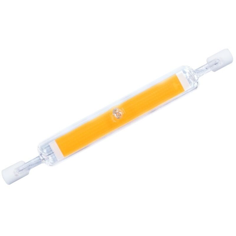 Lampadina LED R7s Nova Line da 8,5W con luce naturale 4000K, adatta per interni. Realizzata in vetro, dimensioni Ø 16x118 mm. Funziona a 220-240V con corrente di 73 mA e fattore di potenza >0,5. Offre 1055 lumen con LED di tipo COB, resa cromatica >80 e diffusione del fascio luminoso di 360°. Classe energetica E, durata di 20000 ore, non dimmerabile. Equivalente a una lampadina incandescente da 75W, con accensione istantanea.