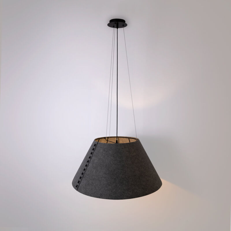 Lampada acustica Gandal 70, appositamente progettata per attutire il rumore ambientale, creando atmosfere più silenziose in spazi come uffici e ristoranti. È caratterizzata da un elegante paralume in tessuto in grado di assorbire i suoni a bassa frequenza, disponibile nei colori grigio e beige. Gandal 70 fonde funzionalità ed estetica, offrendo un'esperienza sensoriale completa. ** Lampadina E27 - NON inclusa** Diametro: 70 cm