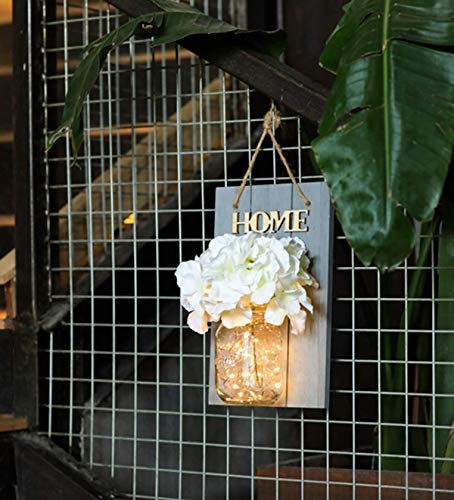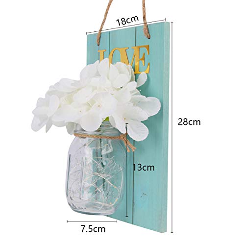 Lampada Applique Luce Esterna Mason Jar Lights di vetro Lampadina Seta Ortensia Striscia per Cene Giardino Feste Patio Caldo Decorazioni di Cerimonia Nuziale bianco caldo Vintage 2 pack,Blu