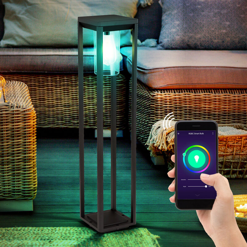 Descrizione Questa luce per esterni moderna e dal design accattivante attirerà sicuramente molta attenzione nel tuo giardino. Poiché è semplice, nera e la plastica è trasparente, può essere facilmente abbinata ad altre serie. Grazie all'illuminante incluso, puoi utilizzare la lampada comodamente da sul divano tramite l'app o utilizza il comando vocale. Puoi utilizzare l'app per impostare il timer con diversi giorni della settimana e orari, nonché diversi programmi di illuminazione. La fornitura comprende una lampadina LED RGB a risparmio energetico e di alta qualità inclusa. dettagli dell'apparecchio • tipo di lampada: piantana• materiale: alluminio pressofuso, nero opaco• paralume: plastica, trasparente• classe di protezione: IP44• lunghezza x larghezza x altezza in cm: 15 x 15 x 80 • attacco: 1x E27• illuminante incluso: si• illuminante di uscita: 1x 10 Watt• Flusso luminoso: 1x 806 Lumen• Colore della luce: da bianco caldo a bianco freddo + Modalità colore RGB• Voltaggio: 230V
