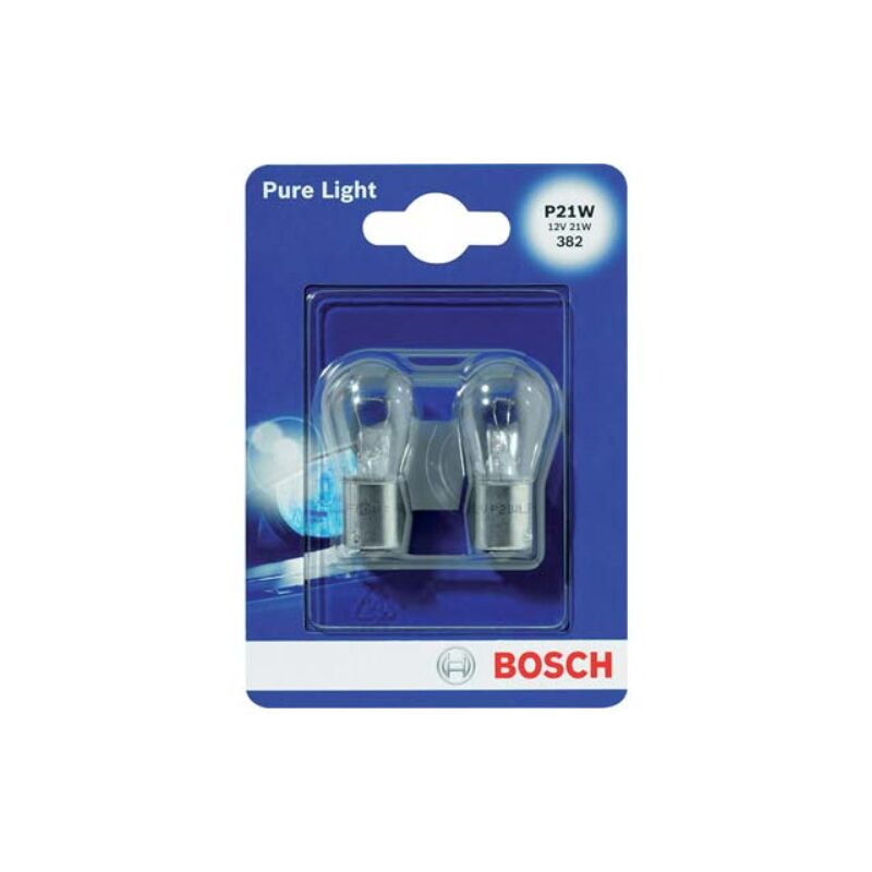 Lampada auto posteriori pure light p21 017 bosch (4 confezioni) Incandescenza volt 12 watt 21 cf=pz 2 lampadine per stop posteriori. attacco p21 017, 12v, 21w. in blister.