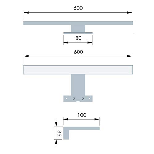 Lampada da bagno a LED 600 mm Lampada da bagno Lampada per specchio 230V Luce per specchio alluminio, colore della luce: bianco caldo