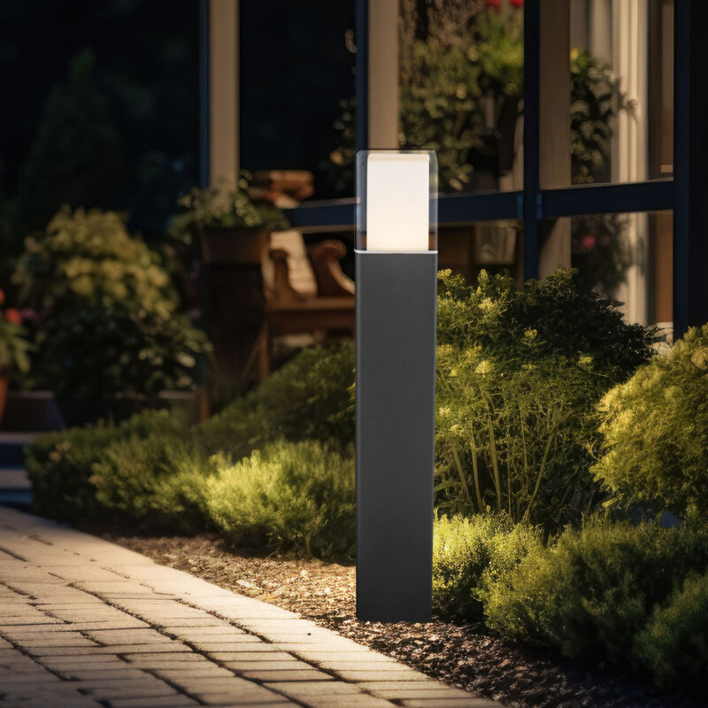 Descrizione Questa moderna lampada da terra è perfetta per un elegante design esterno. L'elegante lampada da terra è protetta dagli spruzzi d'acqua grazie alla sua classe di protezione IP44 ed è quindi ideale per l'uso esterno. L'elegante lampada larga 50 cm ha una sorgente luminosa LED standard con una potenza di 600 lumen. Questa lampada ha anche una piacevole luce bianca calda di 3.000 Kelvin e dimostra un'elevata efficienza energetica. Un vantaggio è anche la lunga durata di 20.000 ore. Puoi completare il quadro nell'area esterna con altre diverse lampade da esterno e da parete della stessa serie di prodotti. Una sorgente luminosa a LED è installata in modo permanente nella lampada! Lampada dettagli • Tipo di lampada: luce base • Materiale: plastica, alluminio • Colore: nero, trasparente • Grado di protezione: IP44 • Lunghezza x larghezza x altezza in cm: 8,5x8,5x50 • Sorgente luminosa: 1x LED • Lampadine incluse: sì (installate in modo permanente) • Potenza lampada: 1x 12 watt