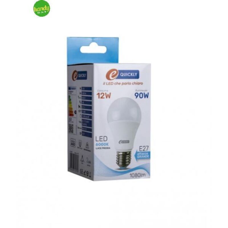 Lampadina Led prodotto dal brand E-Quickly. Lampadina con attacco E27, conpotenza di 12W può generare 1080 lumen, luce bianca fredda perfetta 6000K,l'efficienza della luce è uniforme e omogenea. La lampadina corrisponde aduna lampadina a incandescenza convenzionale da 90 W.La confezione contieneuna lampadina.