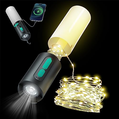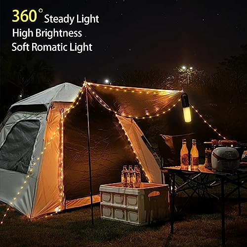 Lampada da Campeggio, Lanterna Campeggio Ricaricabile Esterni con 10M LED Fairy Lights, 7 Luminosità Dimmerabile, Batteria Incorporata 4000mAh per Interruzioni Corrente, Escursioni Aperto, Emergenza