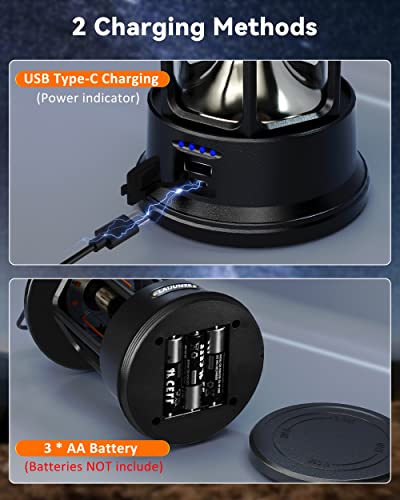 【Batterie AA o ricarica USB】: questa lampada da campeggio a LED ha 2 modalità di ricarica, non solo può essere alimentata da batterie AA sostituibili, ma può anche essere ricaricata tramite un cavo USB (Nota: batterie non incluse). La forma retrò simile a una lanterna delle lampade da campeggio conferisce al vostro ambiente un'atmosfera suggestiva. La lampada da campeggio è il compagno ideale per il campeggio e il cibo all'aperto o il compagno ideale per tranquille passeggiate notturne.
