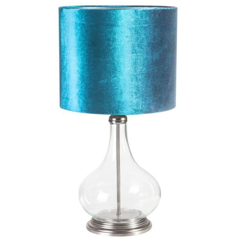 Lampada da terra decorativa, con paralume in velluto larghezza: 32 cm, lunghezza: 61 cm, colore: turchese, Composizione: lampada: ferro, vetro;