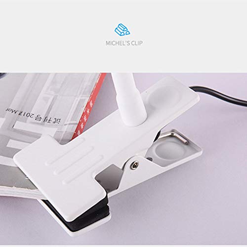 Ricarica della Porta USB: la porta USB della lampada da lettura con clip da tavolo è molto pratica e conveniente. Può essere collegato a laptop, desktop, alimentatori mobili, adattatori di alimentazione, ecc. Puoi collegare facilmente l'alimentatore e il cavo lungo 1,5 m può soddisfare le tue esigenze per evitare l'inconveniente