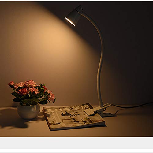 Lampada LED a Clip, Luce da Lettura con Clip da Scrivania, Clip per Lampada Dimmerabile, Lampada da collo Flessibile con Morsetto, Ricarica USB, Adatto per Scrivania,Letto (Bianca)