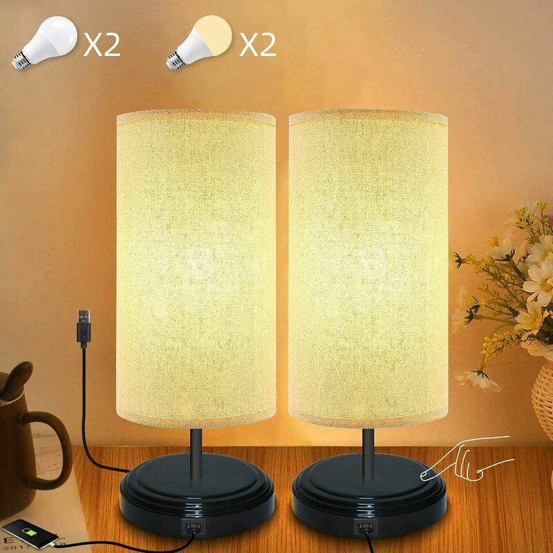 Descrizione del prodotto La lampada da tavolo USB è esattamente quello che stai cercando! Le lampadine a risparmio energetico dal design semplice e moderno possono rendere la tua stanza più attraente. Non solo ottieni DUE lampadine al prezzo di una, ma ricevi anche DUE set di lampadine. Lampadine per tenerti coperto, sia che tu voglia una luce da lettura bianca brillante o una luce più morbida e calda. Basta toccare la base della lampada per regolare la luminosità desiderata, facile e conveniente. In soli 4 passaggi, puoi installare la lampada perfettamente. Per prima cosa svitare l'anello di fissaggio dal portalampada. Secondo, metti il paralume sulla presa. In terzo luogo, sostituire l'anello di fissaggio per stabilizzare il paralume. Infine, inserisci la lampadina. Luminosità della lampada da comodino dimmerabile Questa lampada può essere facilmente regolata su diversi livelli di luminosità. Vuoi premendo ovunque sulla base.Perfetto per camera da letto, soggiorno, dormitorio