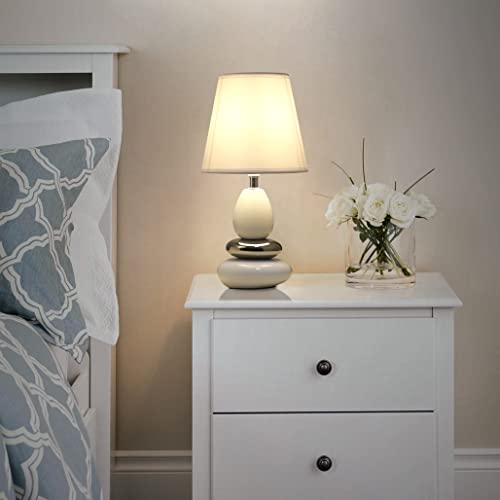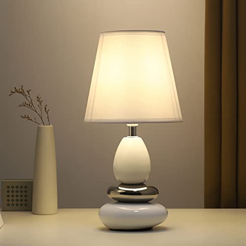 Lampada da comodino "Anna" (bianco-argento), lampada da tavolo in ceramica con paralume in tessuto, adatta a LED, E14, bianco, 230 V, in ceramica [classe energetica A++]