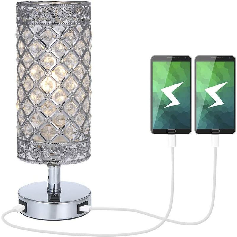 Design moderno ed elegante: realizzata in cristallo K5 e struttura in ferro bling, con alto indice di rifrazione, un design elegante e accattivante intagliato con un motivo delicato, questa lampada da comodino crea un'atmosfera romantica e moderna nella vostra camera.Porta di ricarica USB pratica: con due porte USB sulla base, che supportano una ricarica rapida 5 V/2 A per cellulari, tablet, computer portatili e altri dispositivi elettronici.Base di lampadina E27 standard: potete utilizzare una lampadina a incandescenza o una lampadina a LED con attacco E27, a seconda delle vostre esigenze o delle vostre preferenze (la lampadina non è inclusa).Funzionamento facile: collegare il cavo di alimentazione dopo l'installazione e premere il pulsante per accendere/spegnere la luce.Ampia applicazione: adatto a tutte le case come lampada da ufficio decorativa, ideale per i tavoli da pranzo, i tavoli bassi e le camere da letto