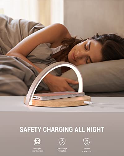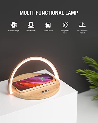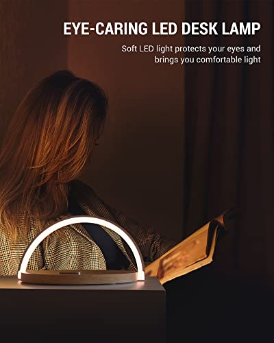 【Caricatore Wireless Qi da 15 W & Ricarica Rapida USB-C】La lampada da tavolo a LED ha funzionalità di ricarica wireless. Carica il tuo smartphone che supporta la ricarica wireless semplicemente posizionandolo sul pannello simil-legno, adatto a tutti i telefoni abilitati Qi. Adatto per iPhone 13/12/11/11 Pro/11 Pro Max/XS MAX/XS con l'ultimo sistema iOS;