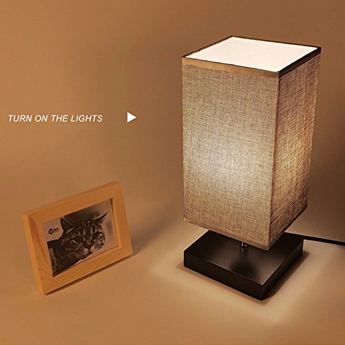 Lampada da comodino, in legno massiccio e paralume in tessuto, per camera da letto, soggiorno, camera dei bambini, studenti, comò, tavolino da salotto, libreria