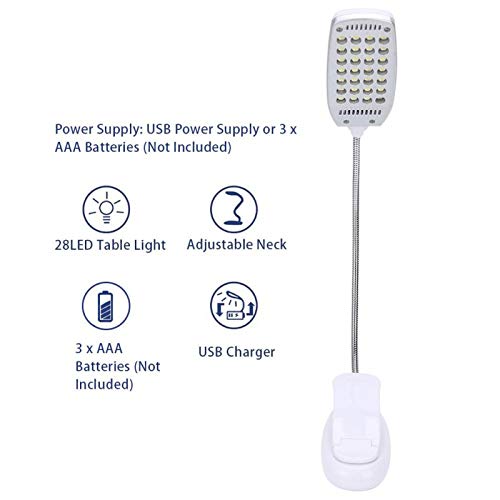 Lampada da Comodino con Luce Notturna a Clip da 28 LED, Protezione per Gli Occhi, Lampada da Comodino per Camera da Letto, Studio