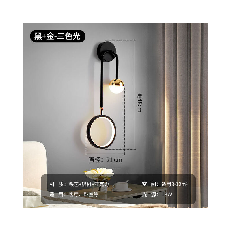 Lampada da comodino moderna camera da letto soggiorno nordico lampada semplice corridoio creativo sfondo lampade da parete,a left - Tricolor