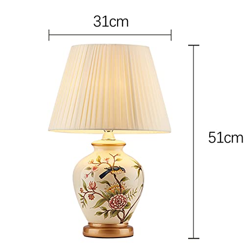 Lampada da Comodino, Moderna Lampada da Tavolo Base in Ceramica Paralume in Stoffa, Attacco E27, 31 * 31 * 51cm, Design Vintage.(Bianco)