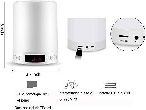5 in 1 Lampada da comodino portatile ricaricabile a luce notturna, lampada da tavolo Altoparlante Bluetooth Musica Sveglia USB Luce colorata con carta di TF, regalo per uomini/donne/bambini (Colore)