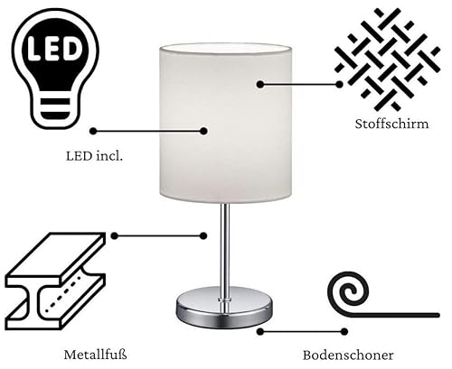 Lampada da comodino a LED, lampada da tavolo con paralume in tessuto (bianco) per camera da letto, soggiorno, studio, tavolino con LED da 3 W (1 lampada da tavolo bianca)