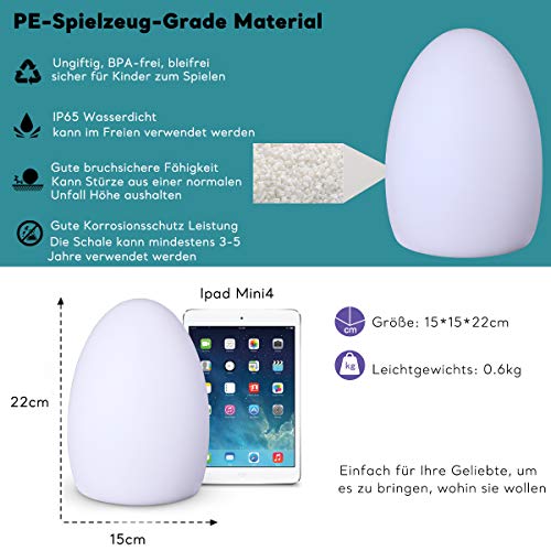 Lampada da comodino con telecomando, ricaricabile, per camera da letto, ristorante, bar, PE, 16 Color Sections, EGG SHAPED