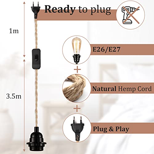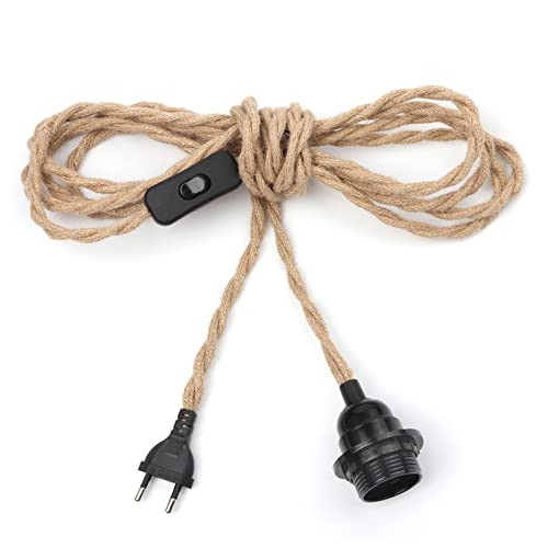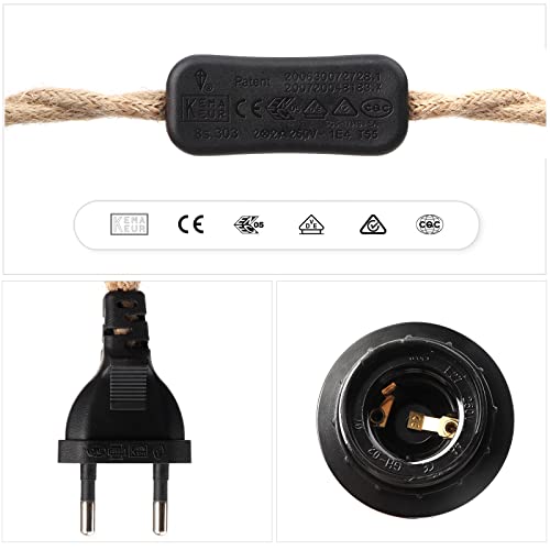 Lampada Corda di Canapa 4,5m Portalampada E27 con Spina E Interruttore, Porta Lampadina Bakelite per DIY Portalampade a Sospensione, Vintage Lampadina, Edison retrò Lampada, Lampadario Soffitto