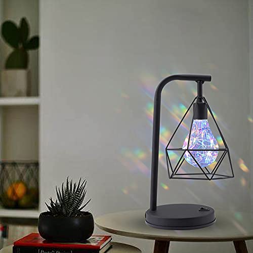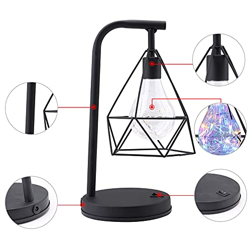 Lampada Decorativa con Lampadina a Batteria, Paralume in Filo Metallico Nero Retrò, Luce Notturna a Led Colorata per Soggiorno, Camera da Letto, Matrimonio, Natale (Colorato)