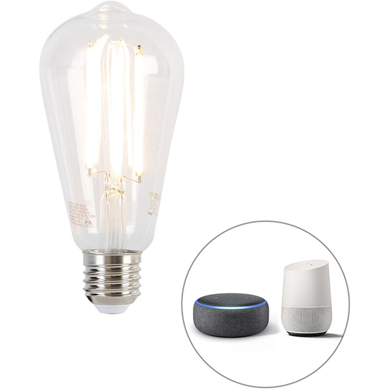 Calex Lampada LED dim-calda Smart E27 ST64 7W 806 lm 1800-3000K Cerchi una nuova lampadina? Scegli questa E27! Con un diametro di 6,4 cm e una lunghezza di 14,2 cm, si adatta perfettamente a diverse lampade. Questa lampadina è potente, con un'emissione luminosa massima di 806 lumen, mentre consuma solo 7 watt. Inoltre, dura a lungo, con circa 15.000 ore di funzionamento. Ciò che rende speciale questa lampadina è la possibilità di regolare la temperatura del colore da 1.800 K a 3.000 K, tramite la funzione intelligente. Ciò significa che puoi cambiare facilmente l'atmosfera della tua stanza dallo smartphone o dal sistema di domotica. Quindi, per un'illuminazione intelligente e suggestiva, scegli questa lampadina E27! Gestisci e personalizza l'illuminazione con facilità con LUUMR. Questa app intelligente consente di controllare la lampadina intelligente dalla luce della lampada con pochi tocchi. Crea l'atmosfera perfetta, gestisci il consumo energetico e imposta scene personalizzate, il