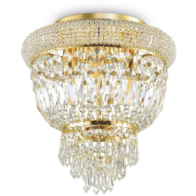 Lampada Dubai in ottone D320xH355mm Caratteristiche: Lampadina inclusa=No Kit fissaggio=No Attacco lampada=E14 Volt=220-240 V AC Watt=E14 max 3 x 40W Materiale=Metallo,Vetro Dimensioni= D 320 x H 355 mm