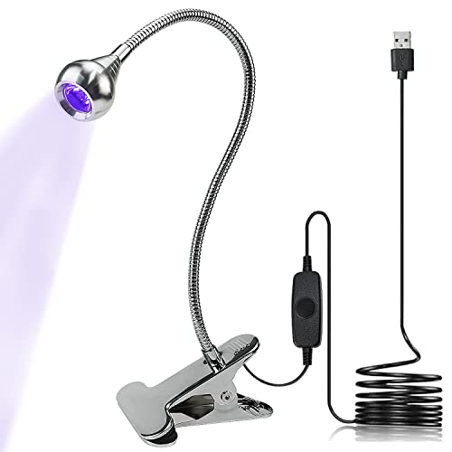Lampada UV da 4W per Essiccatore unghie, Lampada UV LED Viola luce USB per La Riparazione di Telefoni Cellulari e Circuiti Stampati (Argento), Lampada a Colla UV con Clip per Controllo Delle Banconote
