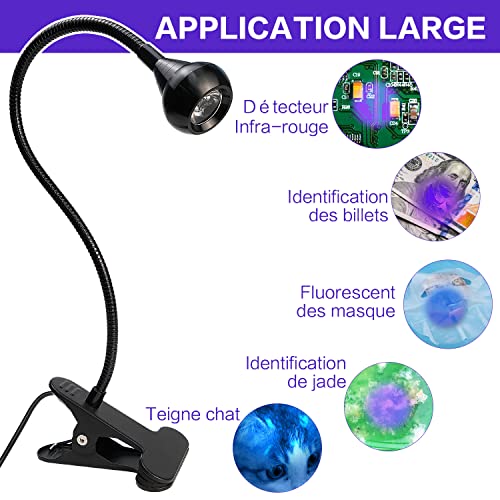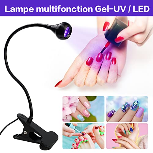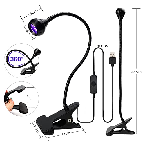 Lampada UV da 4W per Essiccatore unghie, Lampada UV LED Viola luce USB per La Riparazione di Telefoni Cellulari e Circuiti Stampati (Nero), Lampada a Colla UV con Clip per Controllo Delle Banconote