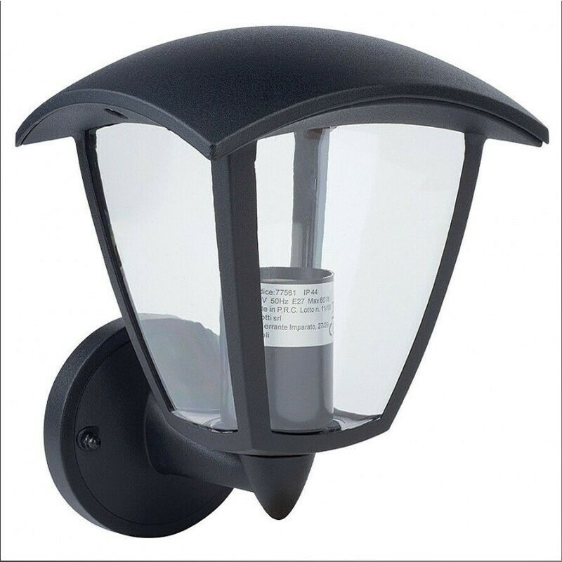Lampada dalle linee semplici e il colore elegante, ideale per ingressi, portici, corridoi, terrazze, balconi o patii. Realizzata in alluminio nero con paralume trasparente. Dimensioni 21,5 x 17 x 23,5 cm. Ha il supporto per lampadine E27 con un massimo di 60W di potenza.