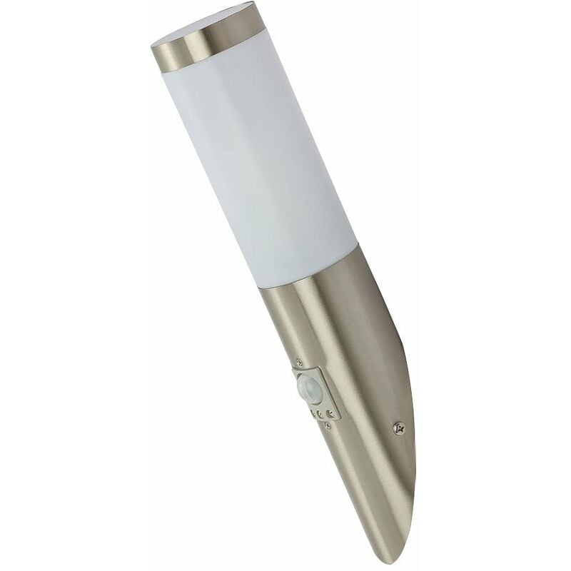 Descrizione: Lampada da parete moderna in acciaio inossidabile. Ottima fattura, aspetto elegante e finitura nobile: queste sono le caratteristiche di questo designer lampada. L'apparecchio è progettato secondo la classe di protezioneIP44ed è anch'esso realizzato in acciaio inossidabile e robusto prodotto in plastica. Questo lo rende resistente alla polvere e agli schizzi e quindi particolarmente adatto per l'uso esterno. Dotata di un rilevatore di movimento, questa lampada aggiunge sicurezza alla tua casa. Come sorgenti luminose, si consigliano lampade a risparmio energetico o LED perché sono particolarmente a risparmio energetico e sono resistenti. Lampadine non incluse. Dettagli: • Tipo: Lampada da parete con rilevatore di movimento • Materiale: acciaio inossidabile, plastica 'Opal' • Dimensioni (ØxAxP) in mm: 76x410x200 • Rilevatore di movimento: PIR • Angolo di rilevamento: 90 ° • Portata: 9 m • Attacco: 1x E27 • Potenza: max 60 watt • Grado di protezione: IP44 • Alimentazione