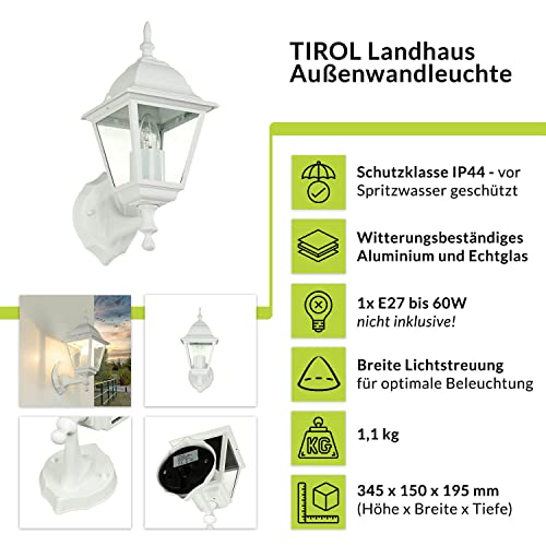 Lampada da esterno "Tirol" in alluminio colato lanterna da giardino bianco opaco grigio lampada da parete per esterni in alluminio IP44 stampaggio ad iniezione lampada da parete per l'illuminazione del giardino del cortile