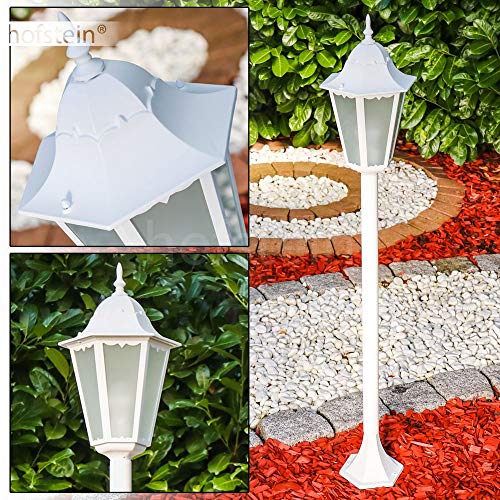 Lampada da esterno/da giardino Hongkong Frost, lampada da terra in stile antico, in fusione di alluminio bianco con lastre di vetro, luce di percorso 120cm, retrò/vintage, E27, IP44, senza lampadina/e