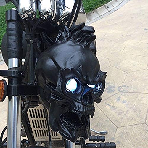 Lampada per faro a LED con testa a teschio per moto per Harley Bobber Chopper Cruiser (Nero)