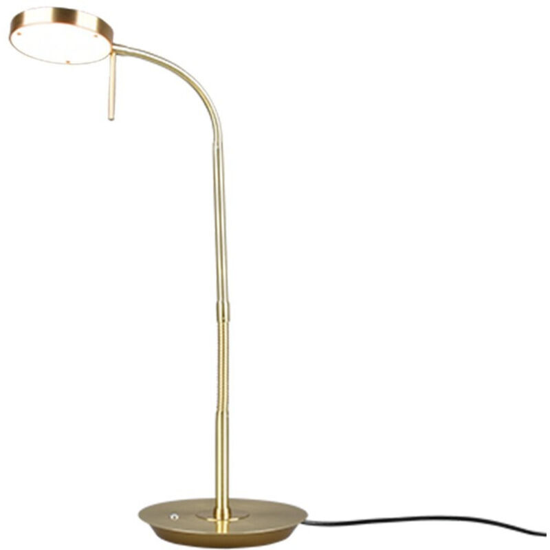 La lampada da scrivania MONZA di Trio Lighting è composta da una struttura in metallo con braccio flessibile di colore ottone satinato. Il diffusore a piastra rotondo può essere orientato in diverse direzioni. Dotata di sensore touch che permette di accendere la lampada a diversi livelli di intensità luminosa tramite dimmer integrato. Non compatibile con dimmer esterno. Modulo LED integrato 12 watt, resa luminosa 1400 lumen, temperatura colore 2300k - 3000k - 4000k (il colore della lice può essere regolato a diversi livelli, luce calda, caldissima e naturale). L'ultimo settaggio verrà memorizzato e utilizzato alla prima accensione della lampada. Una lampada pratica e versatile, indicata per illuminare in maniera ampiamente diffusa tavoli e scrivanie di contesti sia residenziali che lavorativi. Perfetta per l'ufficio o lo studio. Disponibile anche la versione di colore nero e nichel.