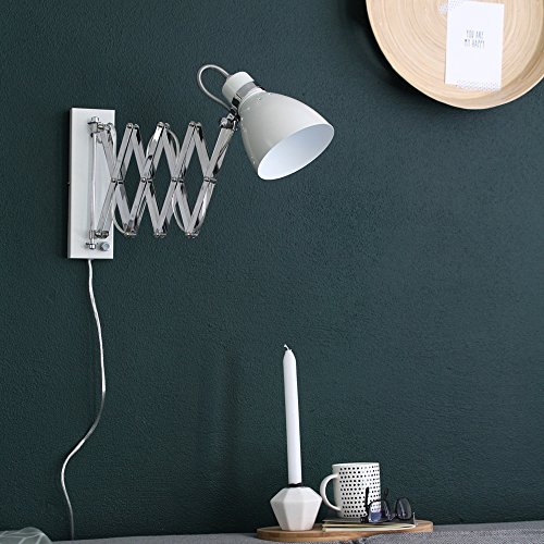 Lampada a forbice, argento cromato, lampada da parete industriale, 6290ST, attacco E27, lampada da parete estensibile per LED e lampadina con dimmer + Giveaway