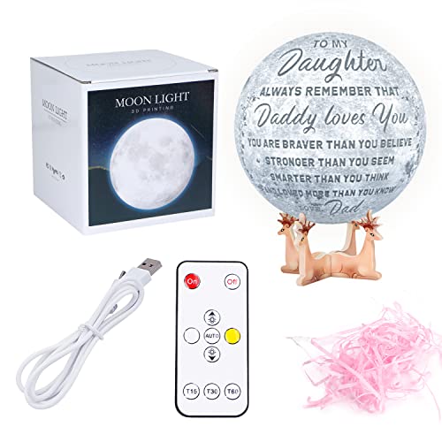 Lampada a forma di luna 3D con incisione 3D per nipote, luce di luna con supporto e telecomando e controllo touch, ricaricabile, regalo di stampa 3D personalizzabile (Per La Mia Figlia Di Papà)