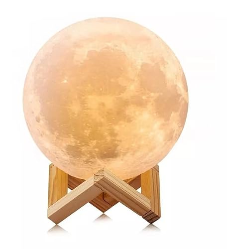 Lampada a forma di Luna 3D con luce a led Moon illuminazione Cavo Usb Notturna Sensibile Supporto in Legno per Camera da Letto