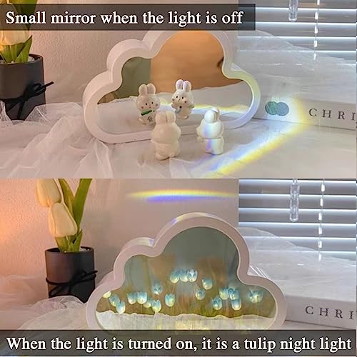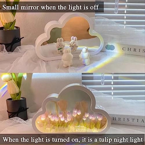 Lampada a forma di tulipano a forma di nuvola, luce notturna a specchio con tulipani fai-da-te artigianale, luce notturna a forma di specchio a tulipano nuvola for la decorazione della camera da letto