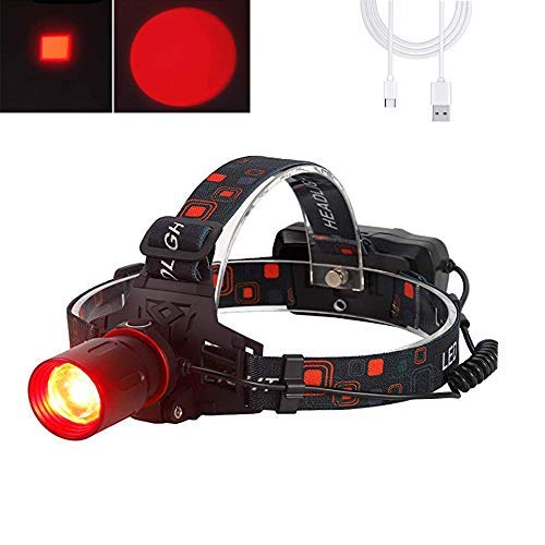 Lampada frontale con luce rossa, 1000 Lumen Lampade da Testa LED ricaricabile rosso, Zoom in grado per astronomia, caccia, campeggio, visione notturna (Solo rosso)