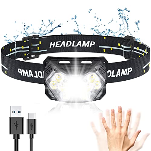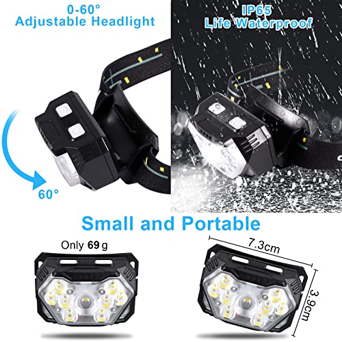 Lampada Frontale LED Ricaricabile, 2000 Lumens Luce Frontale, 6 Modalità di Illuminazione, Impermeabile IP65, Con Sensore di Movimento, Perfetto per il Campeggio, la Corsa, la Pesca e il Ciclismo