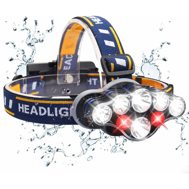 Lampada frontale a LED super luminosa: vengono utilizzati 8 LED super luminosi e questa lampada frontale con maggiore luminosità, raggio del fascio più ampio, penetra forte, buon condensatore, brillante per tutti i tipi di attività notturne. 8 modalità di illuminazione e lunga durata: principale la luce può scegliere tra High, Low, All o SOS Strobe 4. Modalità luce extra. Puoi scegliere tra High, Low, Red Light e SOS Strobe. Viene fornito con linea USB e batterie ricaricabili per ottenere una maggiore luminosità e luminosità, nonché una maggiore durata.Rotazione di 90° e cinghia regolabile: il raggio di luce ruotabile di 90° del proiettore a LED consente una visione panoramica al buio. La cintura è regolabile per adattarsi a tutte le taglie di casco, sia per adulti che per bambini. Perfetto per l'arrampicata, il jogging, la pesca, il campeggio, l'escursionismo e il lavoro notturno. 【IPX4 Waterproof】 La lampada frontale è dotata della tecnologia avanzata IPX4 impermeabile e