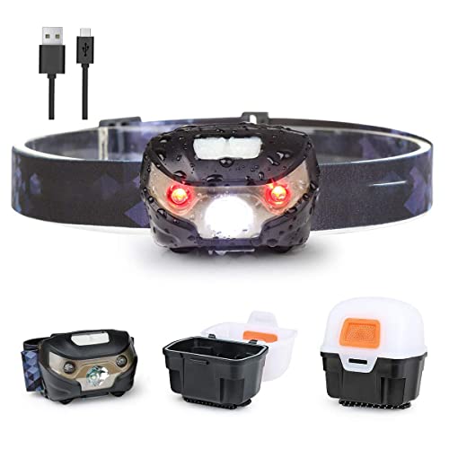 Lampada frontale a LED, ultra luminosa, USB, ricaricabile, 160 lumen, IPX5, impermeabile, con luce rossa per campeggio, jogging, pesca, avventura, alpinismo, con cavo USB incluso