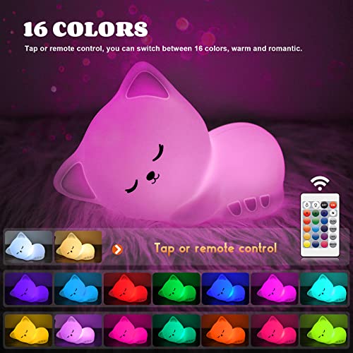 Lampada per gatti con luce notturna a forma di gattino, ricaricabile tramite USB, con sensore touch e telecomando, 4 modalità, 16 colori per bambini, bambini, regali di Natale per bambini