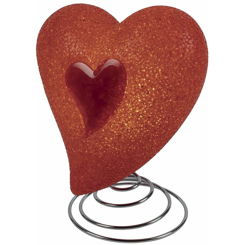 Ecco un idea graziosa e simpatica per riempire quel comodino che ti è sempre sembrato troppo vuoto o per popolare quella scrivania a cui hai sempre voluto dare un tocco in più di colore e vivacità. Le lampade cuore led illuminano l'interno della nostra casa creando un atmosfera magica e accogliente. I colori brillanti, ma allo stesso tempo delicati, non disturbano l'occhio e la base a spirale garantisce inoltre stabilità alla lampada rendendola adatta anche al riponimento su mensole e scaffali. Caratteristiche: In plastica Base in metallo Con led Interruttore ON/OFF Funziona con 3 batterie RL44 INCLUSE Colore: rosso Misure: l. 15 x p. 5 x h. 15 cm