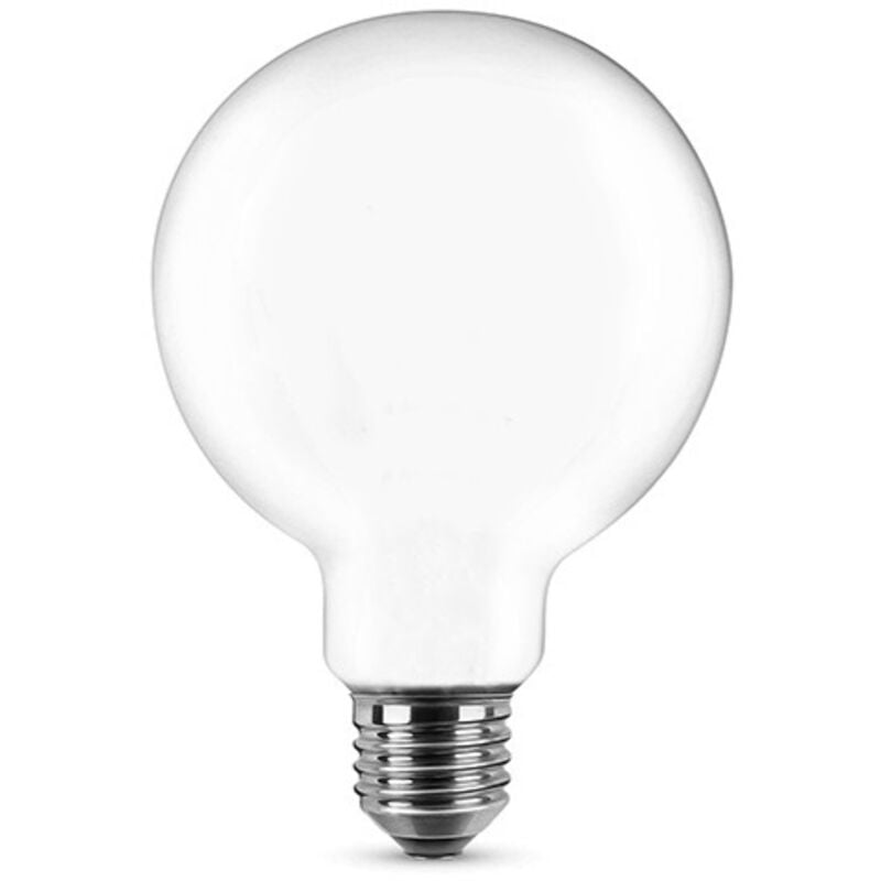 Lampadina Globo G125 Led Opale a Filamento 11W E27, Luce Calda 2700K. Marca: NOVA LINE. Materiale: vetro e alluminio. Dimensioni: 176x125 mm. Caratteristiche elettriche: tensione nominale 220-240V, corrente 81 mA, fattore di potenza >0,5, potenza 11W, frequenza 50/60 Hz. Caratteristiche illuminotecniche: 1521 lumen, tipo di Led a filamento, classe energetica D, temperatura di colore 2700K, resa cromatica >80, diffusione 360°, durata 20000 ore, 10000 accensioni. Non dimmerabile, equivalenza incan
