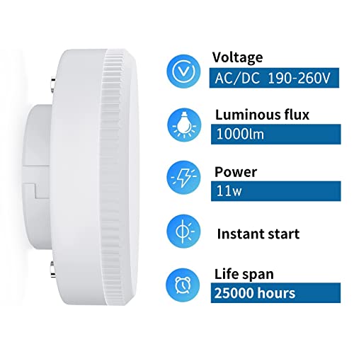 ★ 【Risparmio Energetico】: 89% di risparmio energetico!La lampada LED GX53 da 11W è un'alternativa ideale alle lampade alogene da 100W.